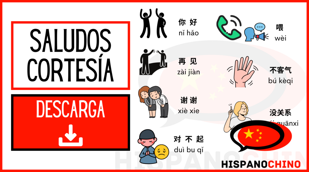 - Una infografía en formato pdf con el vocabulario del listado HSK1 relacionado con los saludos y la cortesía.